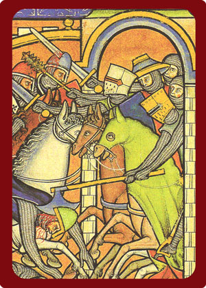 To initiate a Joust, toss a Banner Card into the center of the table as an Action. The Joust then commences in a clockwise manner, starting with the Earl to the left of the Joust initiator (who makes his choices last).